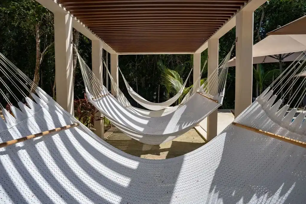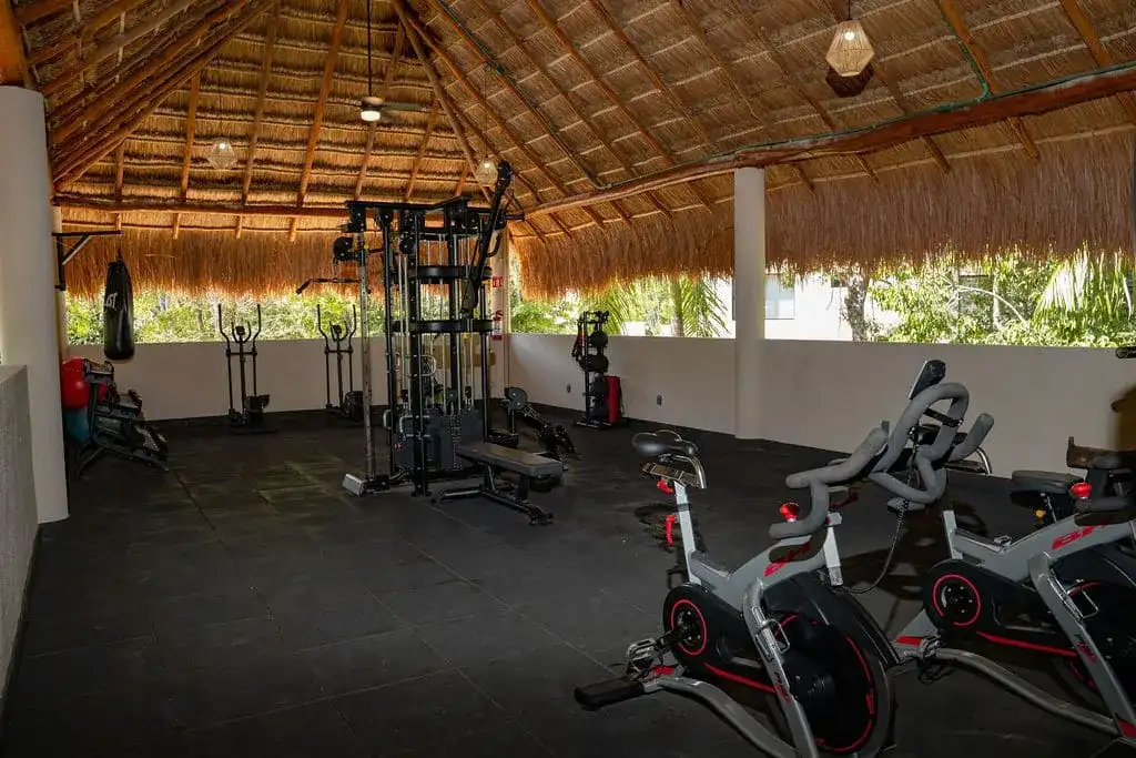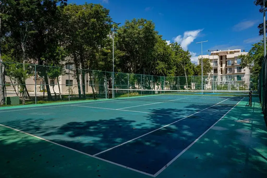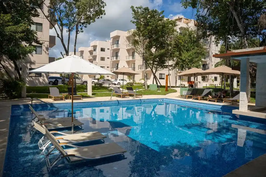 The residential complex offers a swimming pool, green areas, and controlled access. Its location, slightly removed from the town center, is well suited for those who prefer a quieter, more private setting while still being within easy reach of Puerto Morelos.